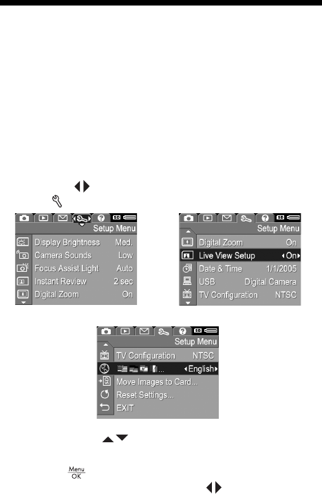 - Bruke Setup Menu (oppsettmeny)