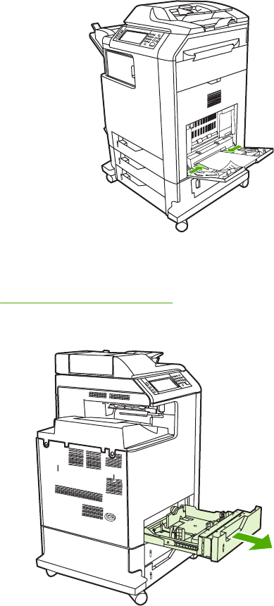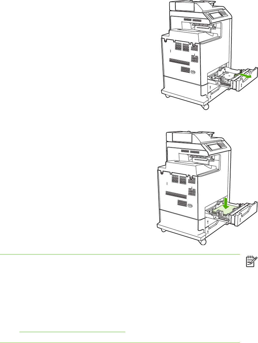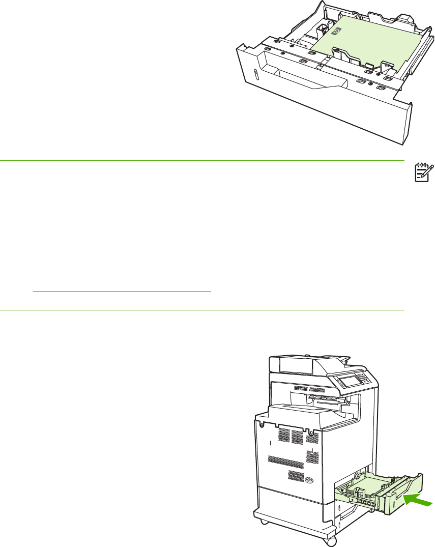 - טעינת חומרי הדפסה מזוהים בגודל רגיל במגש 2, 3 או 4