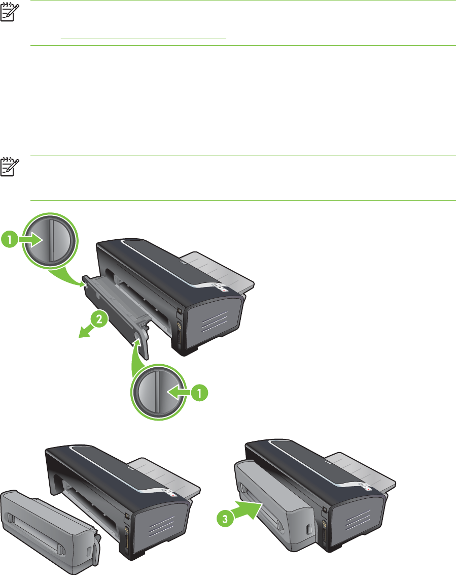 - Installieren des optionalen Zubehörs für automatischen beidseitigen Druck (Duplex-Einheit)