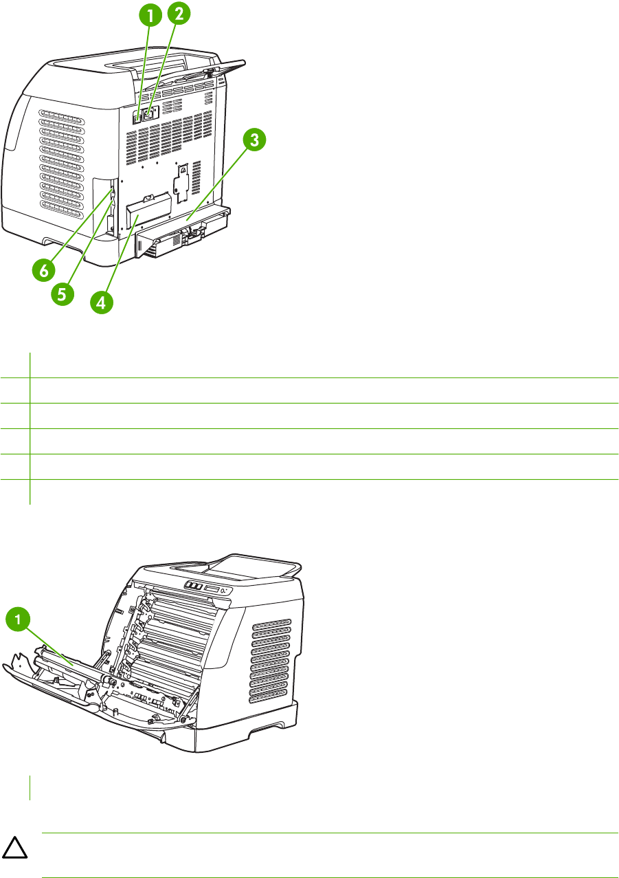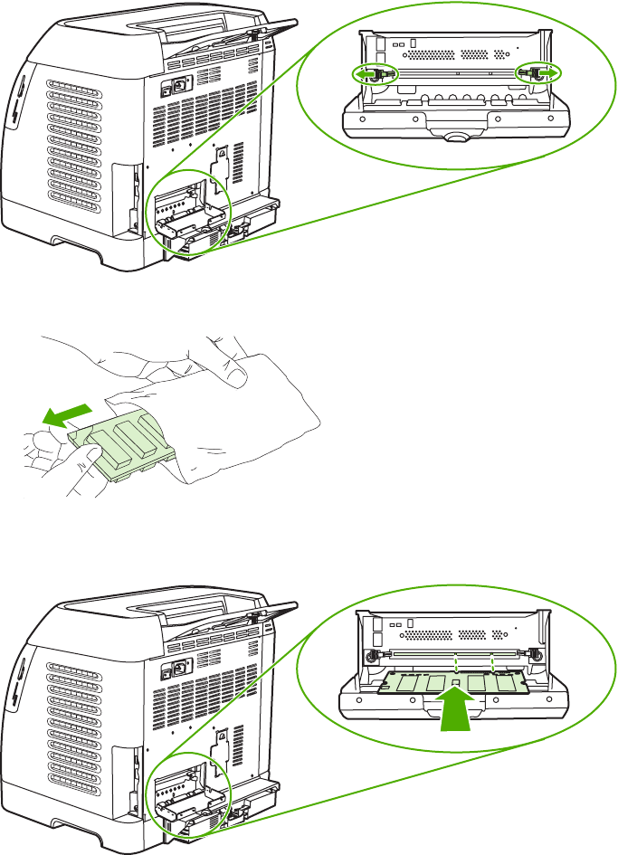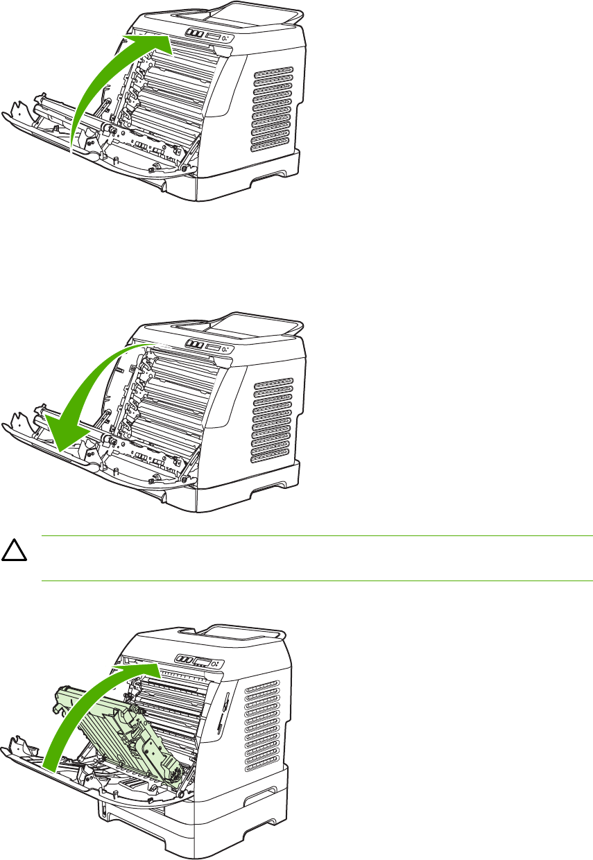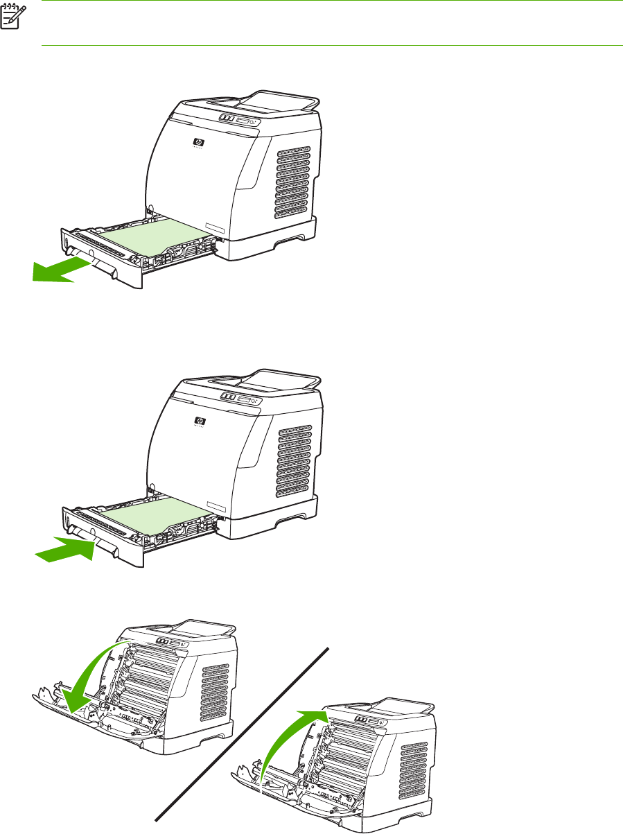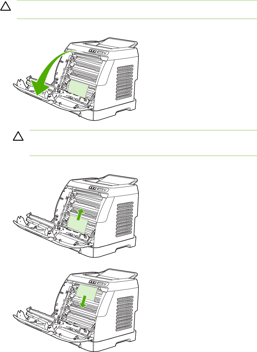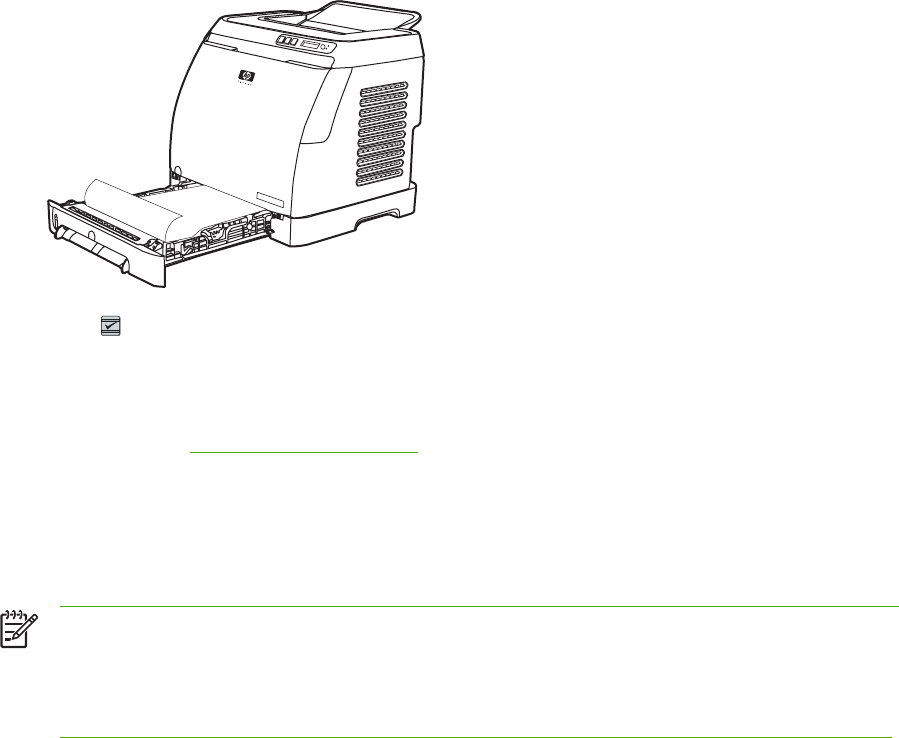 - To clear jams from the duplex area (HP Color LaserJet 2605dn and 2605dtn models only)