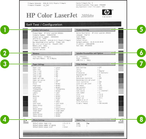 Configuration page, printing