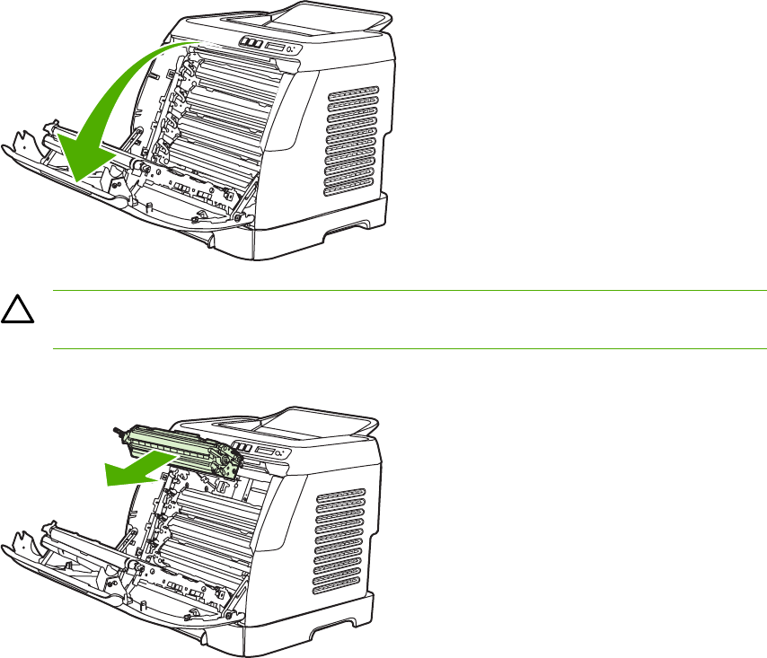 - To clear jams from the top bin (HP Color LaserJet 2605)