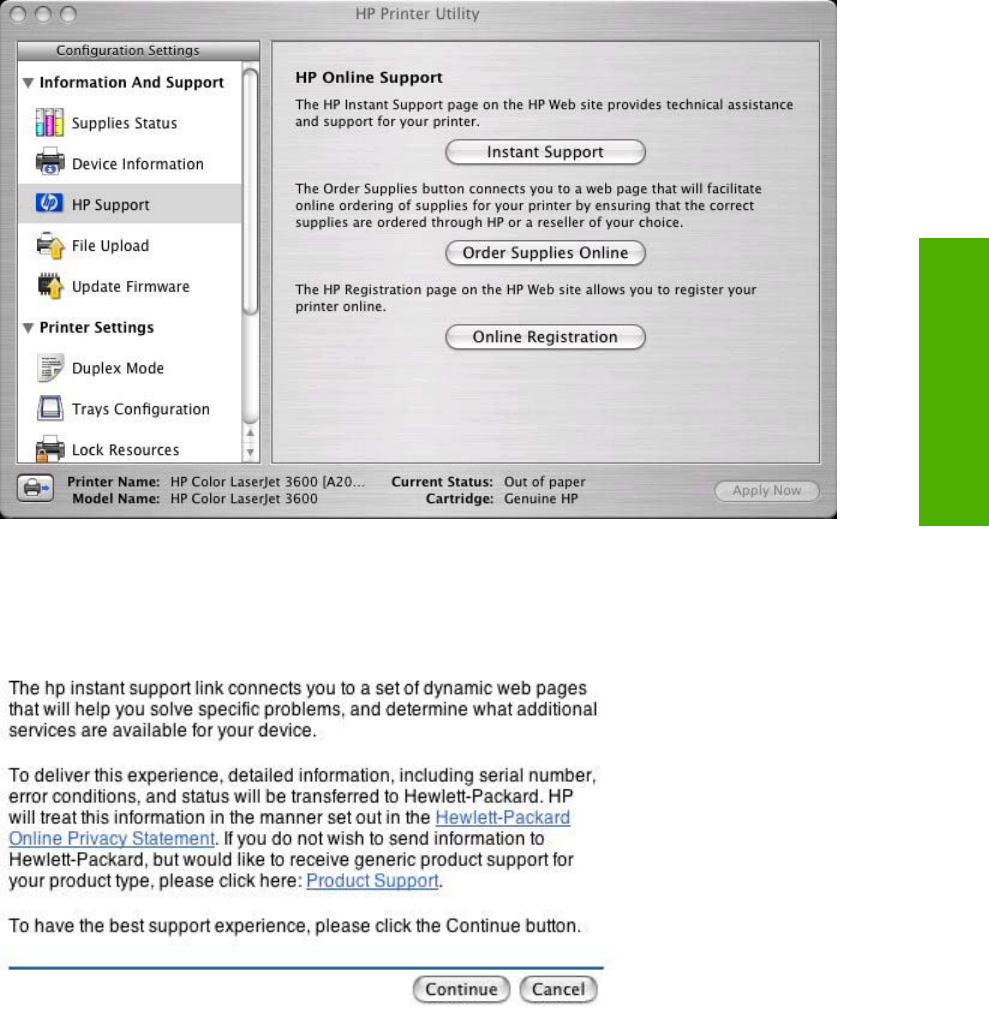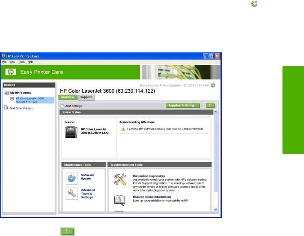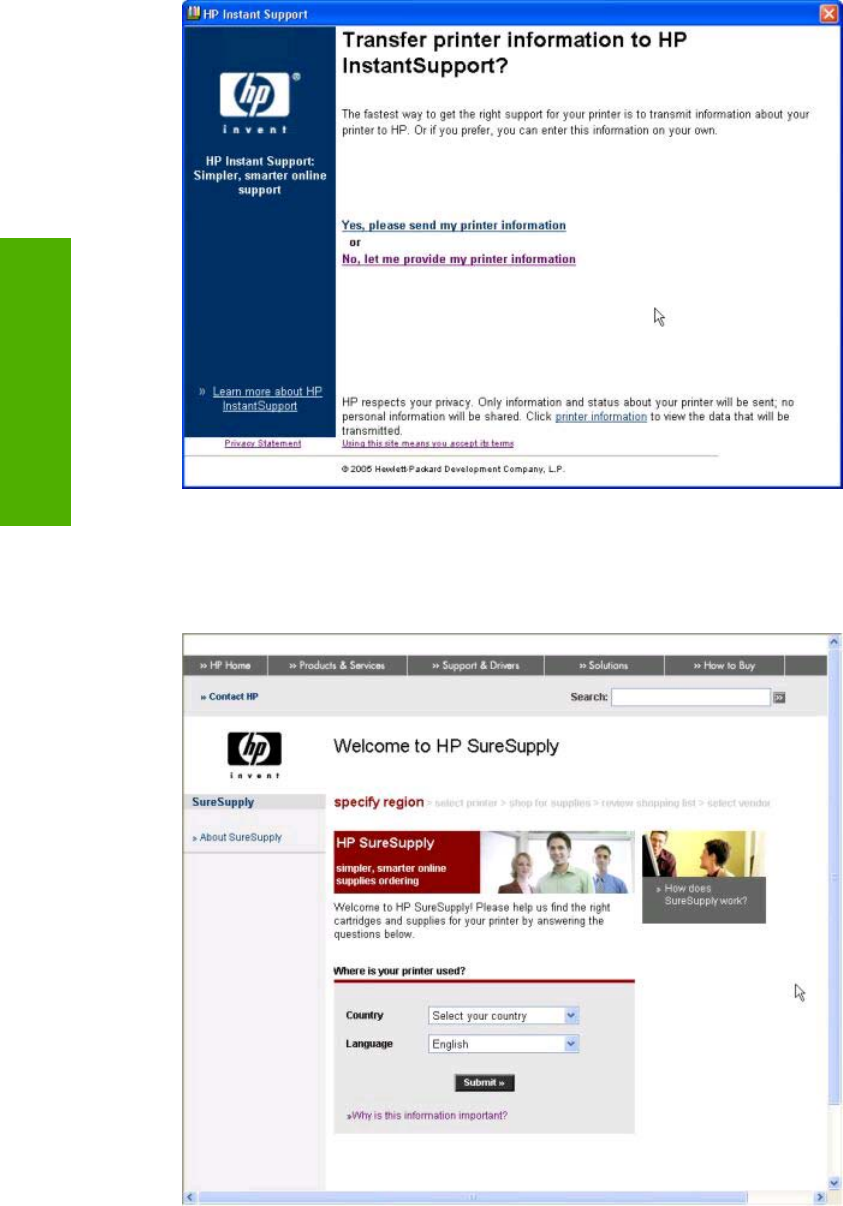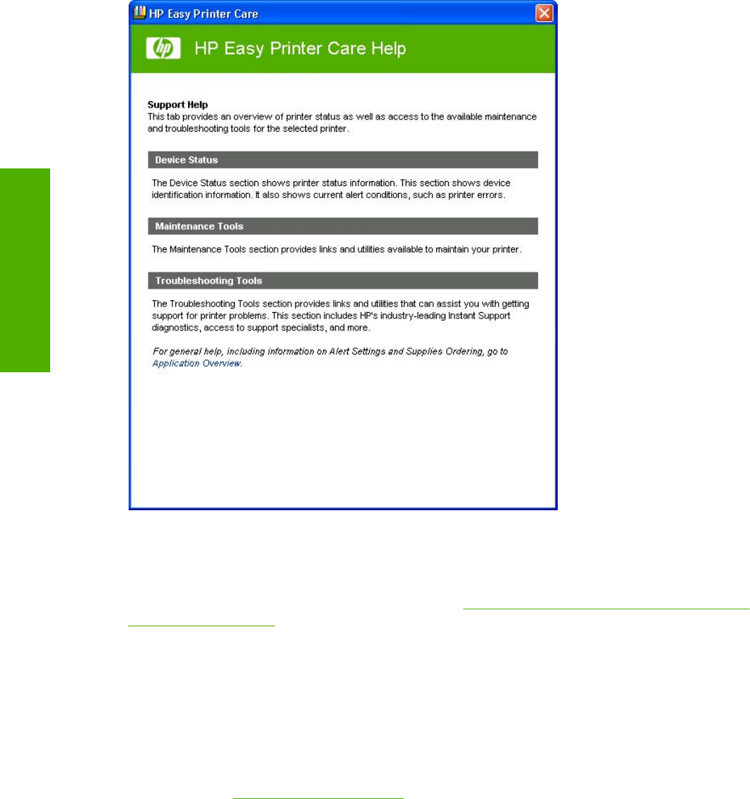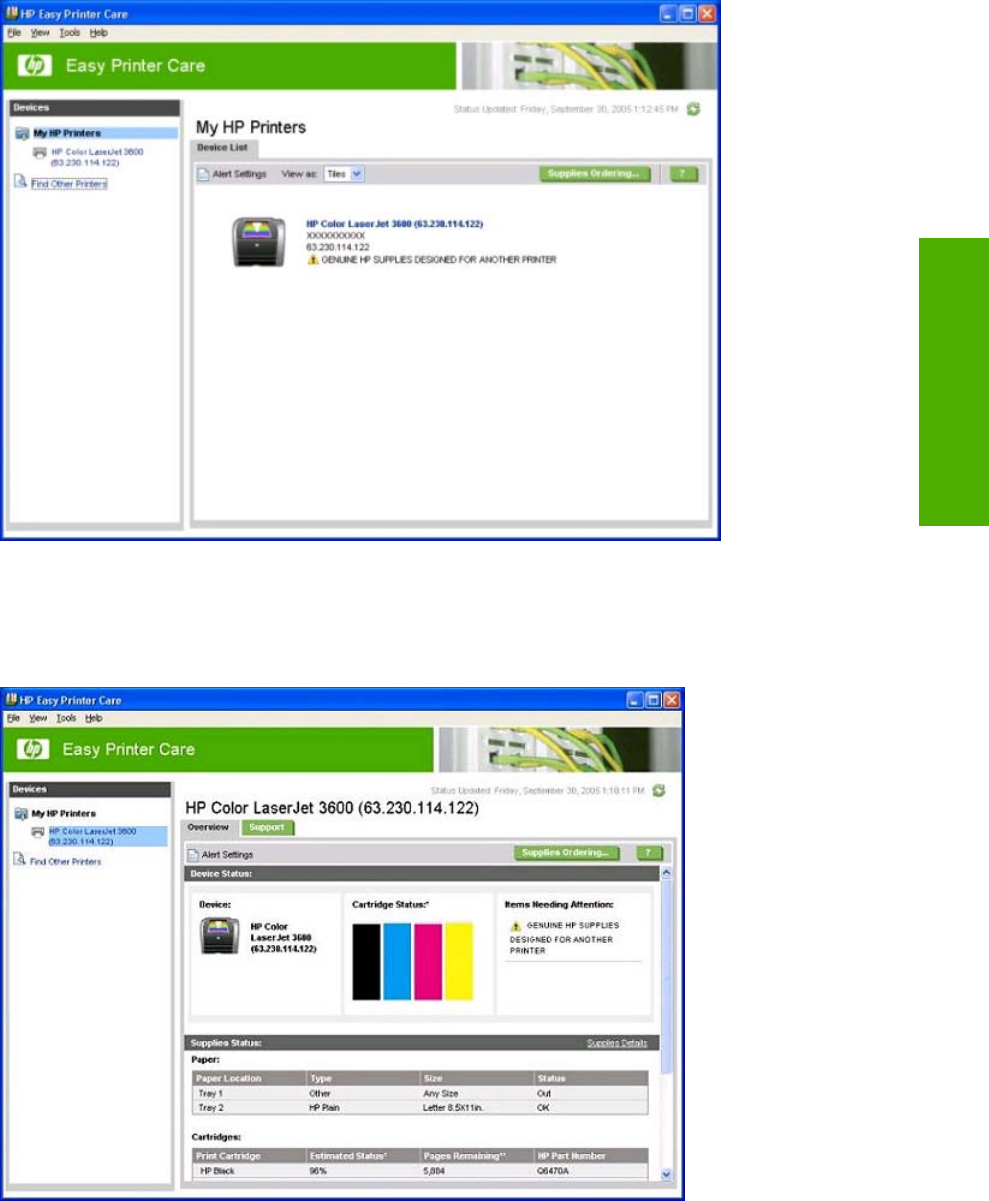 Support screen, HP Easy Printer