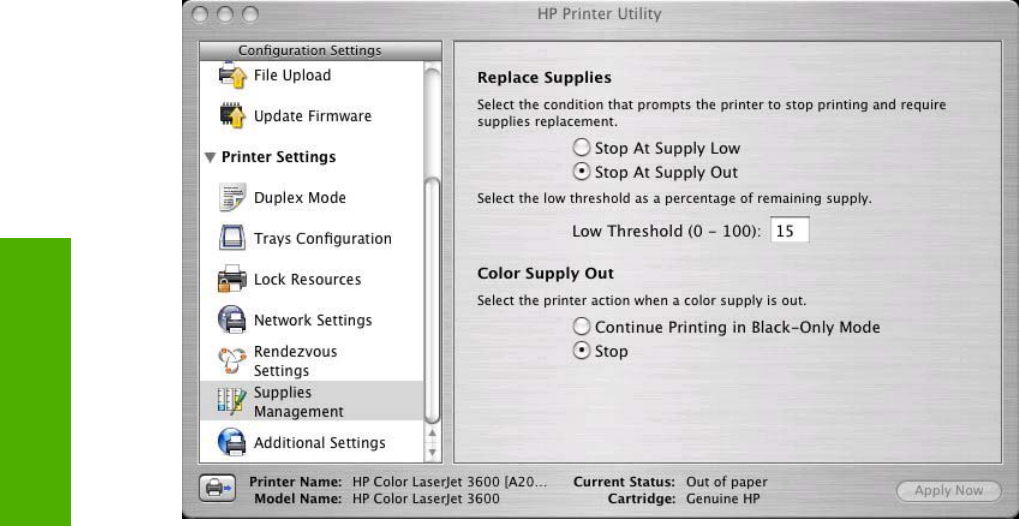 Supplies Management, HP Printer