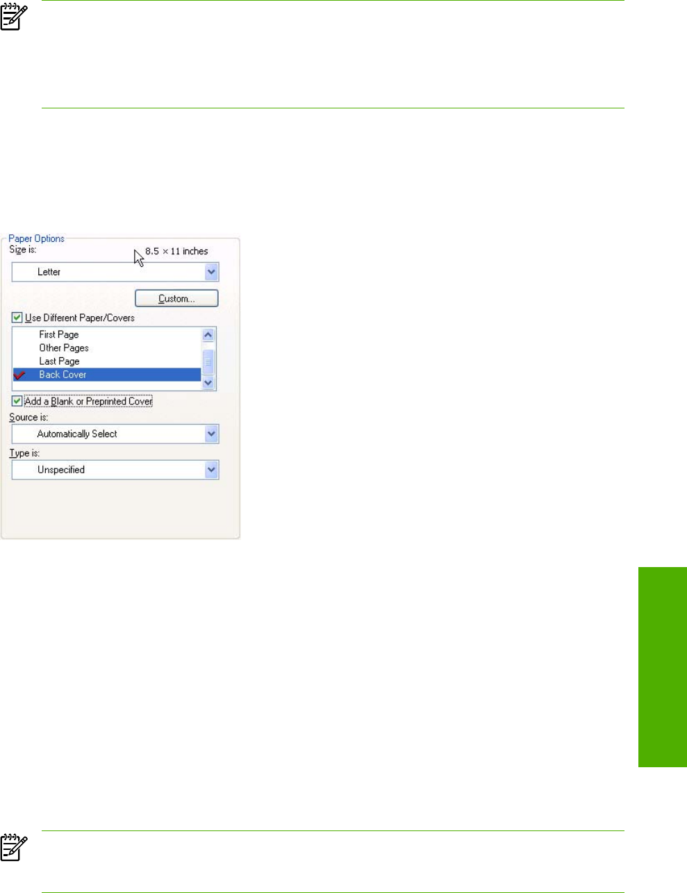 Use Different Paper/Covers, HP