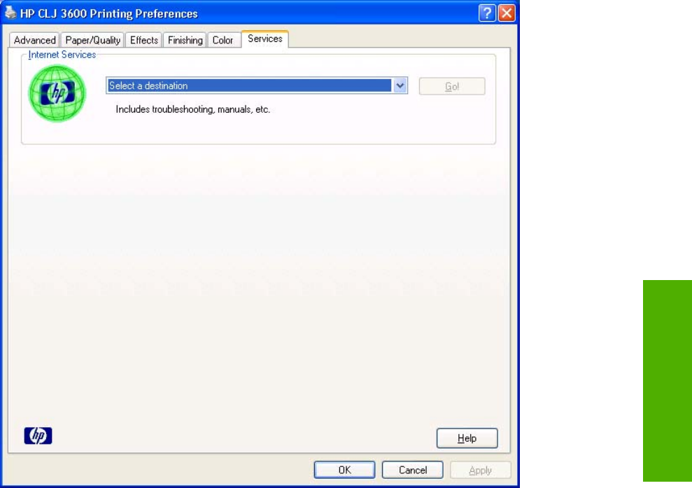 Services tab, HP JetReady host-