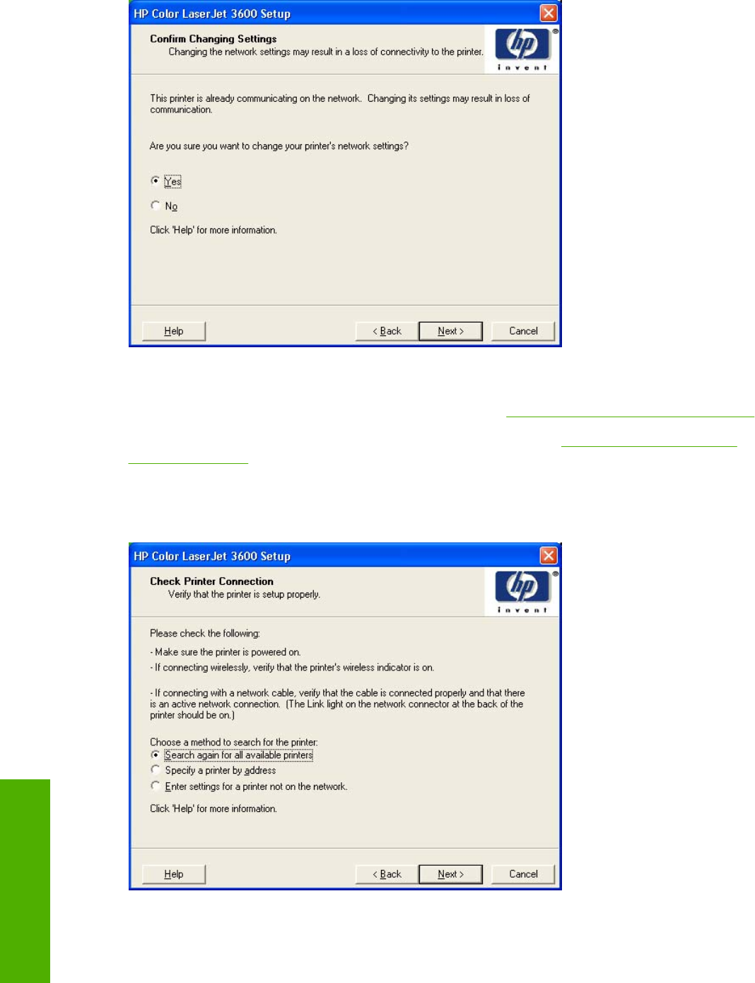 - Using the Help, Back, Next, and Cancel buttons