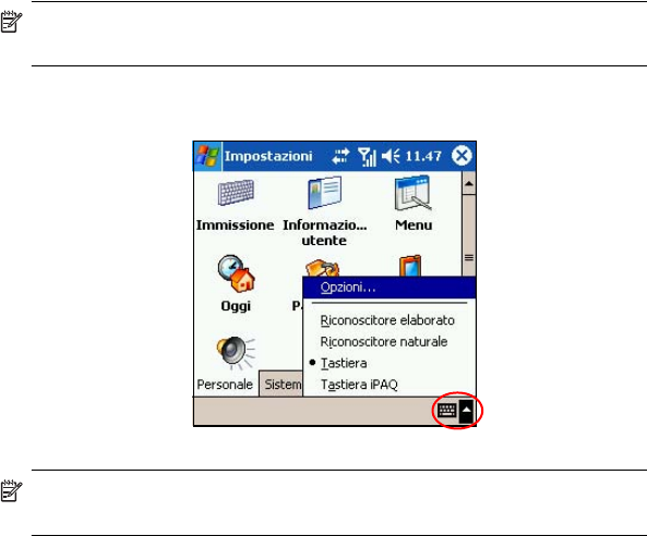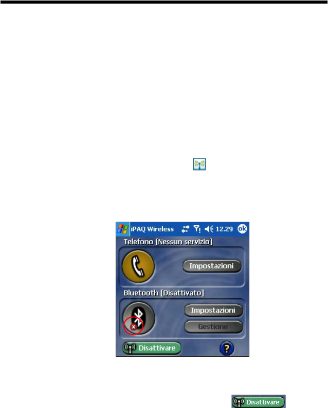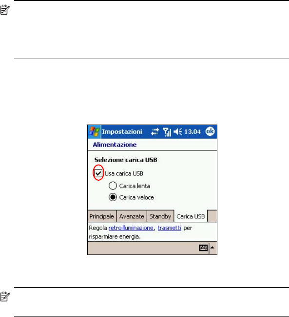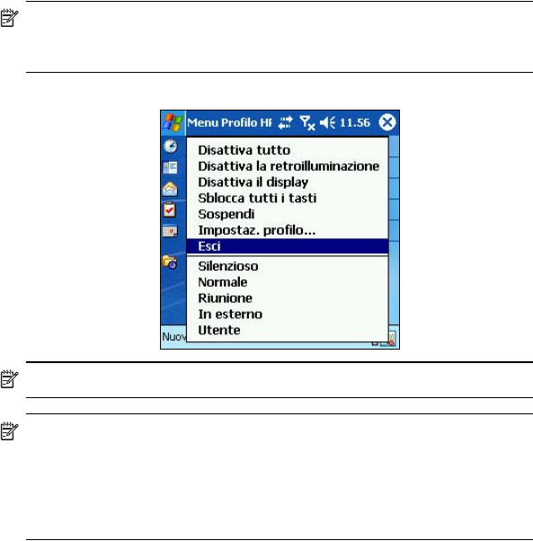 NOTA: quando l'HP iPAQ è scollegato dall'alimentazione CA, il