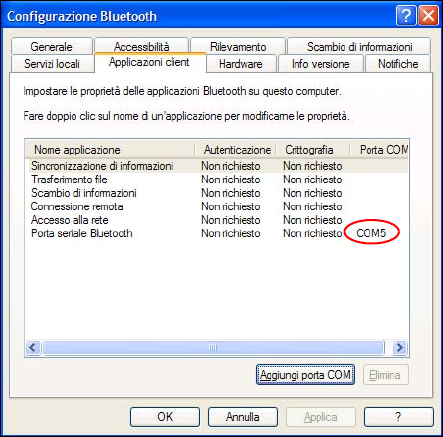 Bluetooth Dispositivo di classe II; potenza di trasmissione fino a 4 dBm, campo