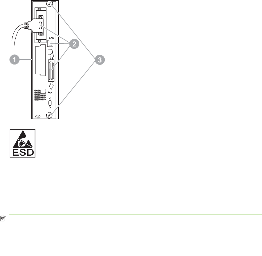 - Τοποθέτηση/αντικατάσταση του εξαρτήματος φαξ στο HP LaserJet M5025 MFP και στο M5035 MFP