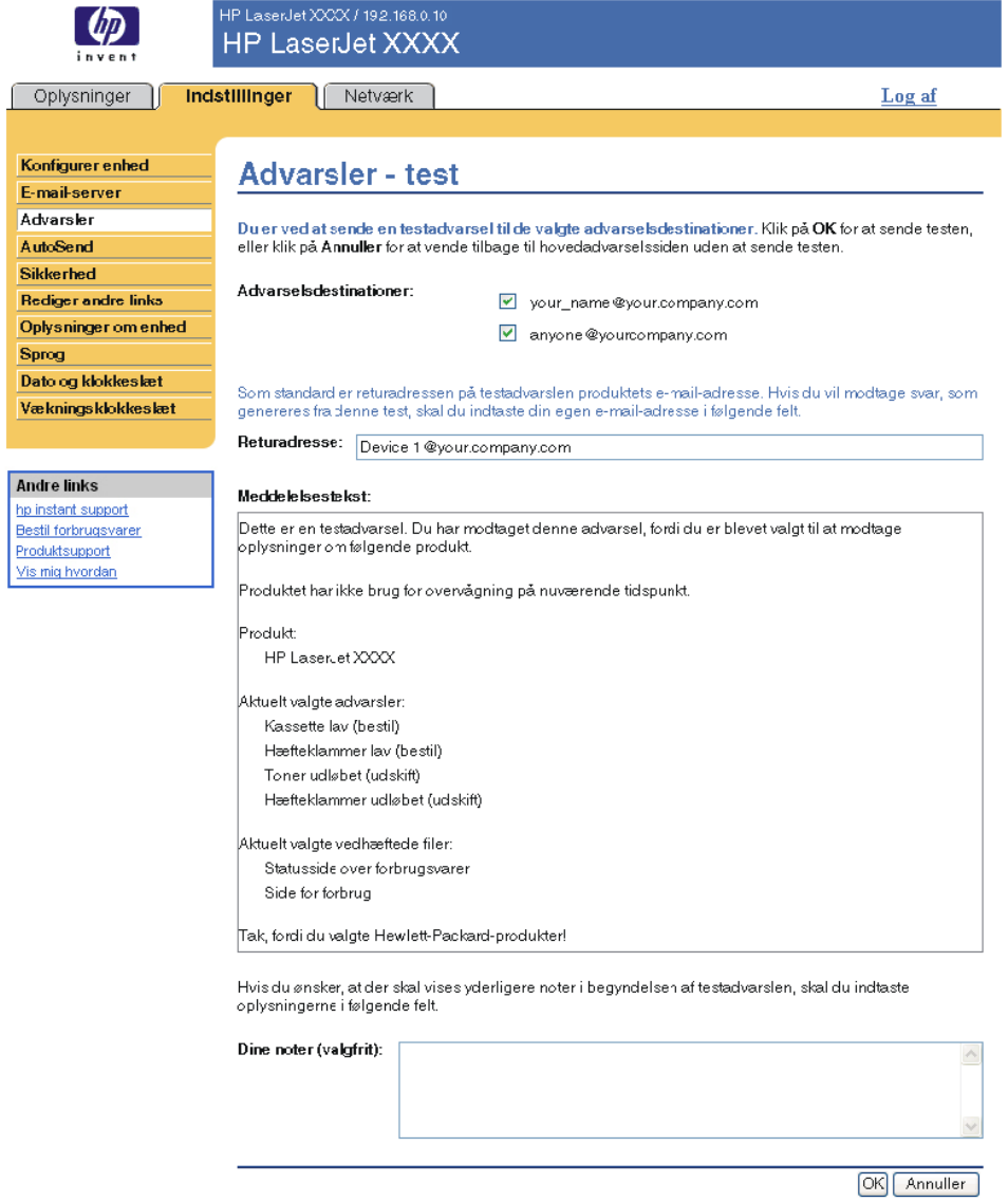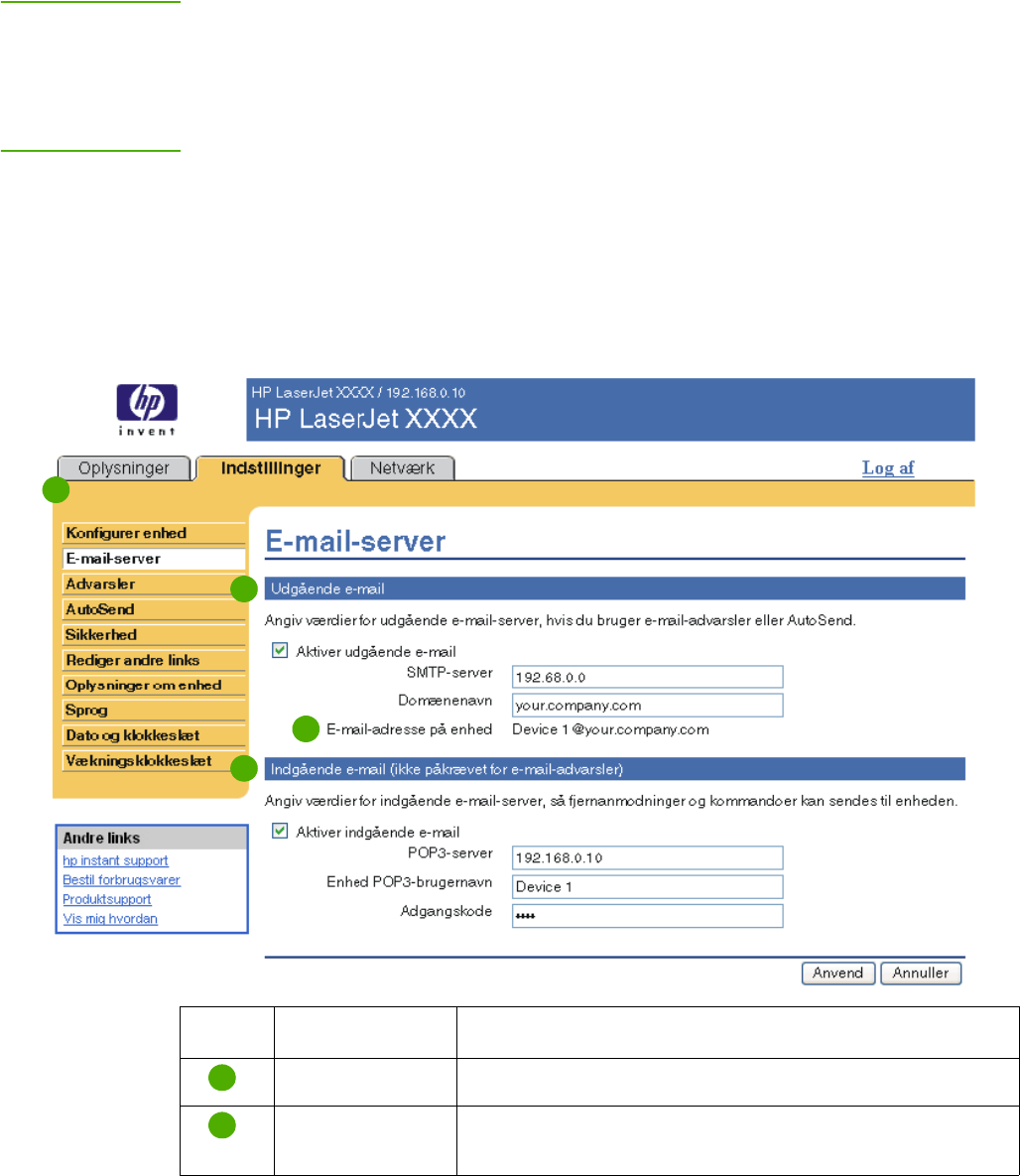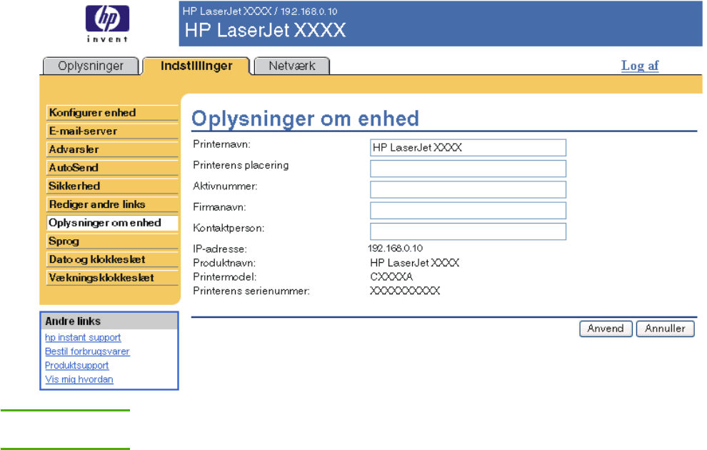 - Konfiguration af produktet fra skærmbillederne under Indstillinger