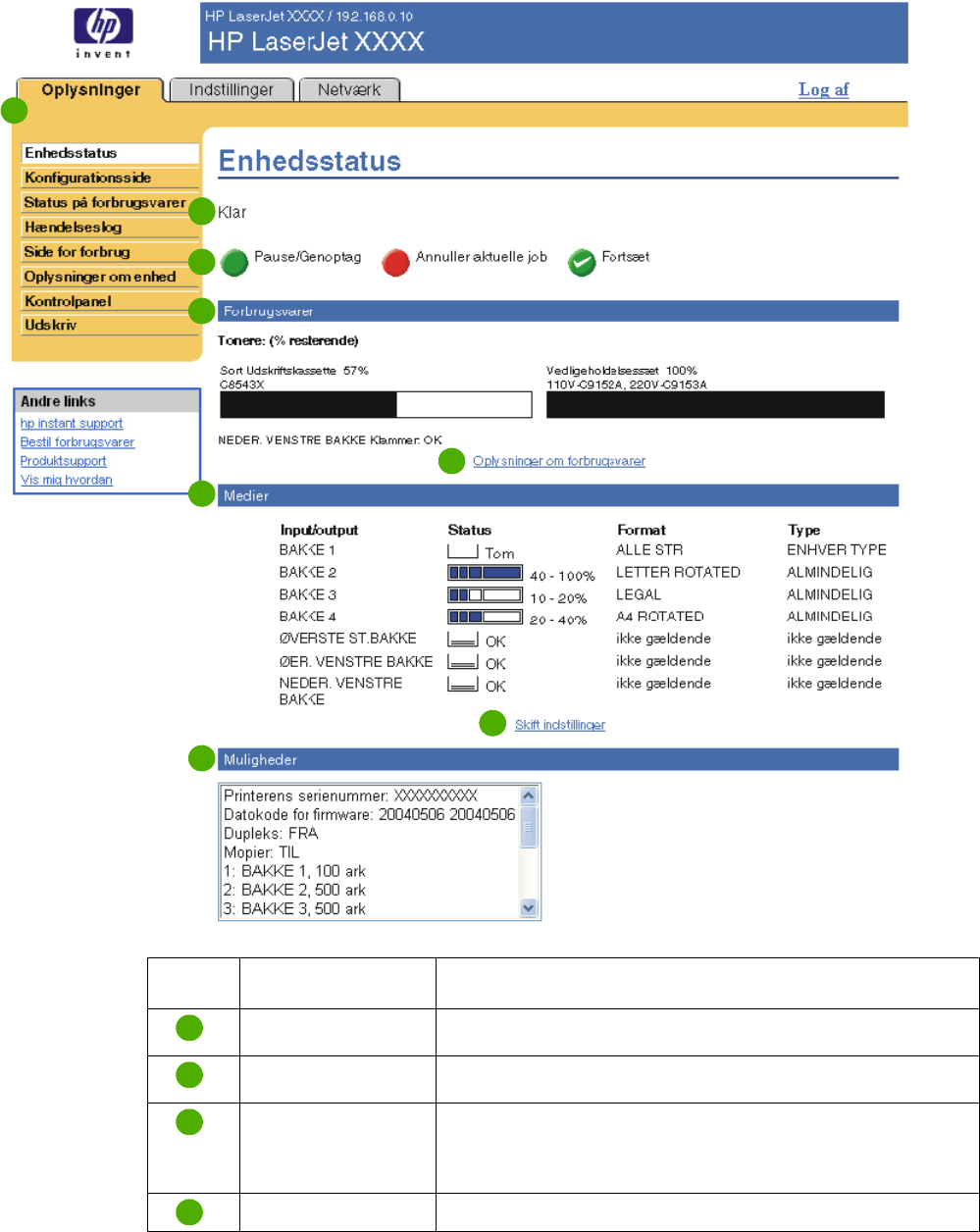 Navigering i HP Integreret Webserver . . . . . . . . . . . . . . . . . . . . . . . . . . . . .5