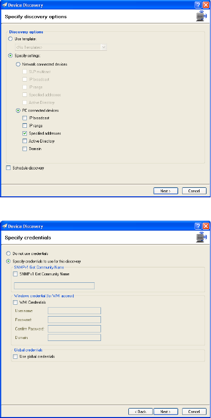 credentials are provided, HP Web Jetadmin can use WMI calls to discover directly connected