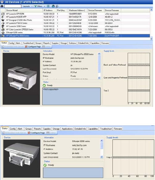 Agent. Notice that only the model name and tray gauges are displayed because HP Web Jetadmin