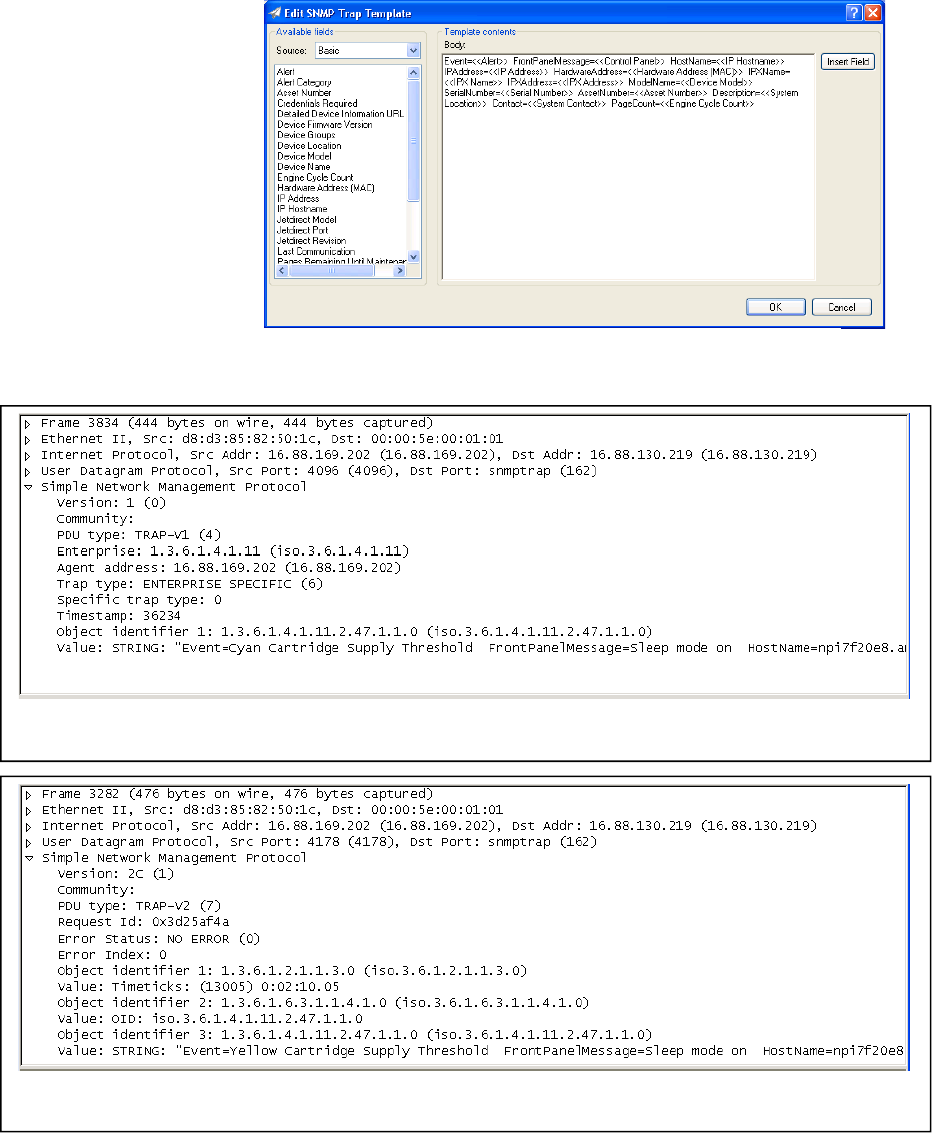 the device sending traps or with HP Web Jetadmin receiving traps. Ensure that the IP address of