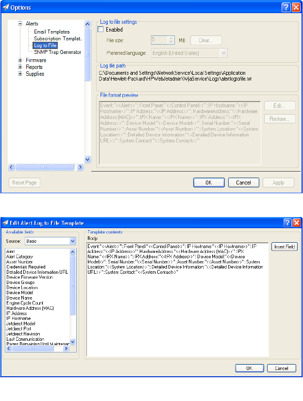 low—can trigger HP Web Jetadmin to send email messages that contain detailed information