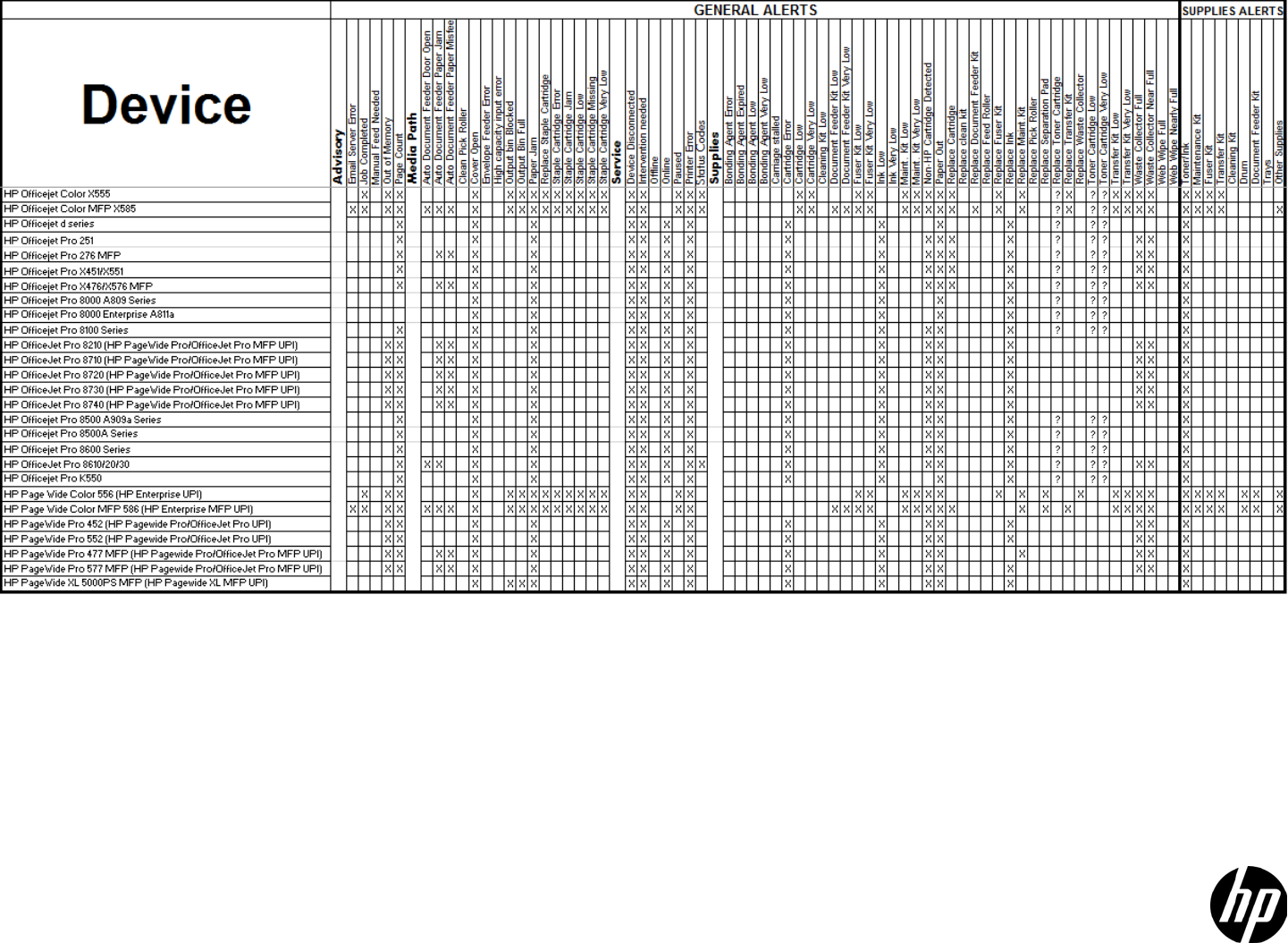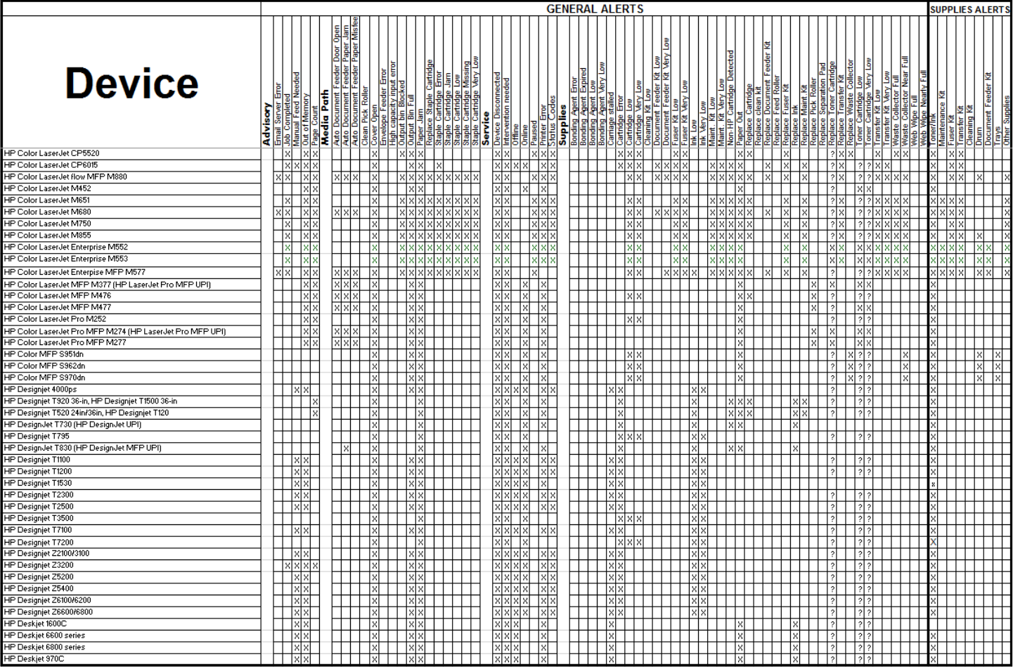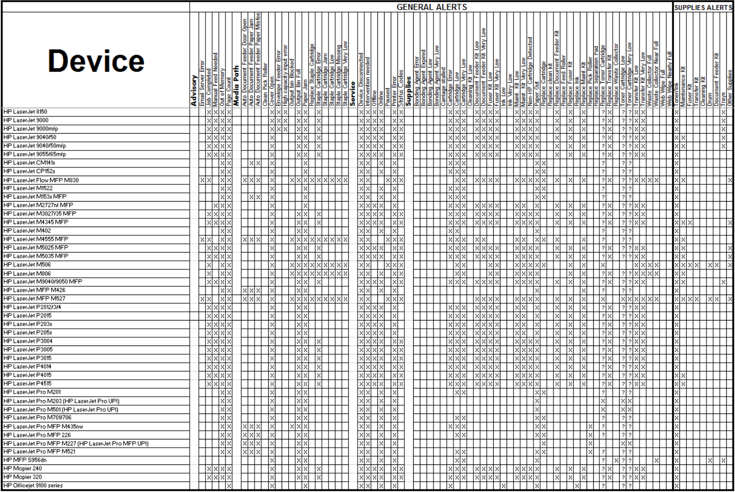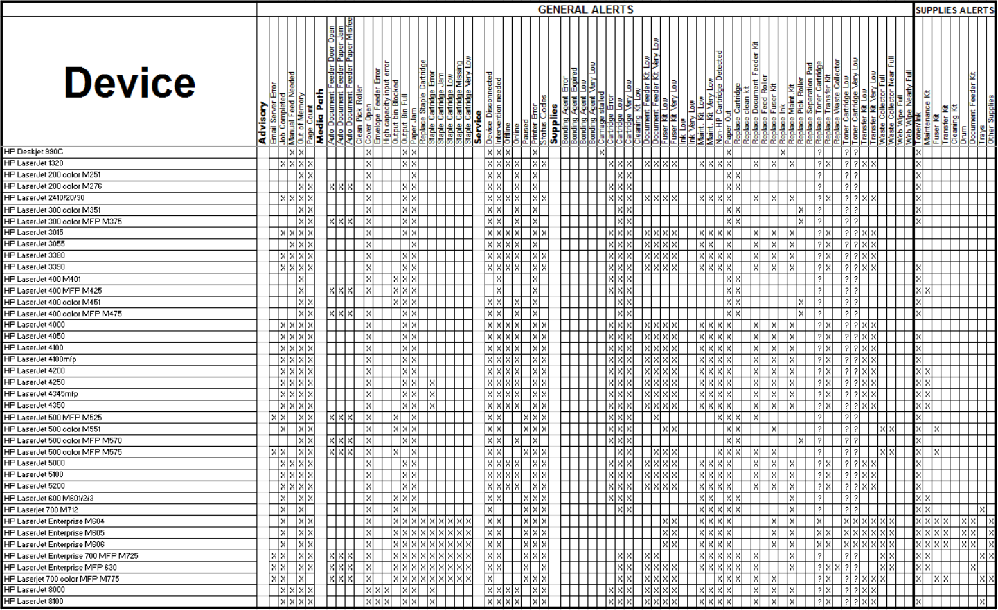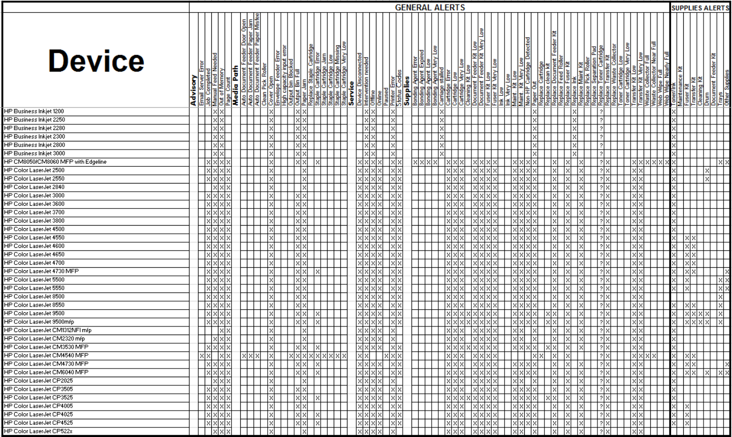 Alert logging can be turned on in HP Web Jetadmin and the exact content of the logging can be