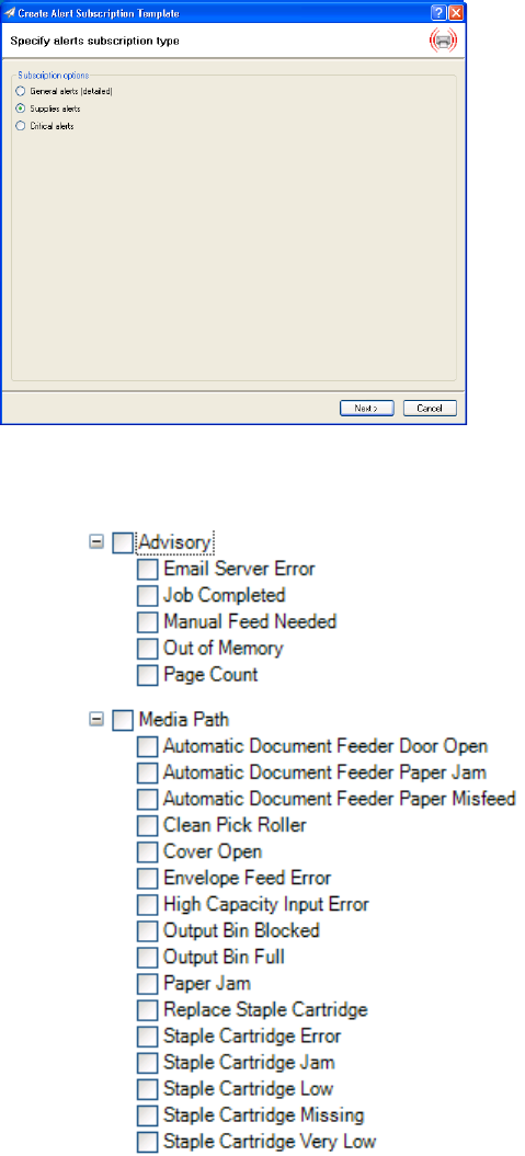 device. A very simple test of a polling alert is to subscribe to a Supplies alert where the threshold