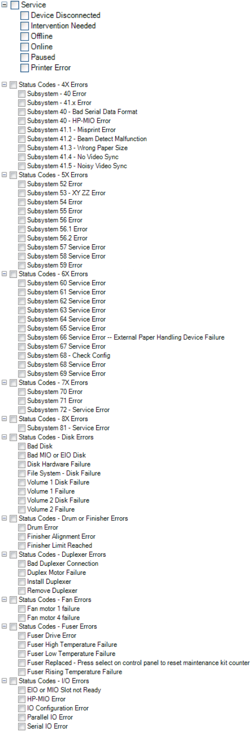 printing devices. For example, error or warning conditions on devices—such as paper out or toner