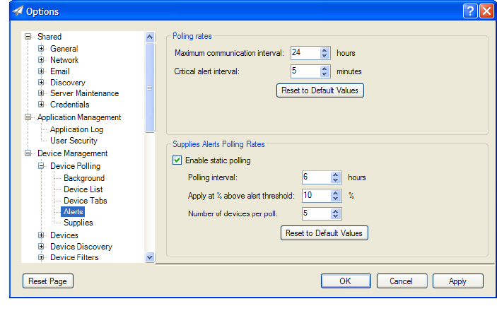 Alerts polling rates can be adjusted by navigating to Tools > Options > Device Management >