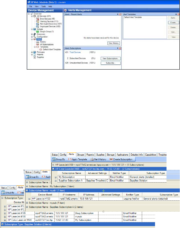 The alerts features in HP Web Jetadmin provide a powerful mechanism for monitoring the fleet