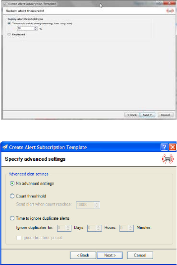 where the threshold is greater than the current level. After the subscription is completed, an alert