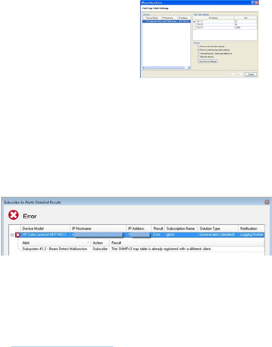 trap table is still populated with the HP Web Jetadmin IP address. If the IP address has been removed,