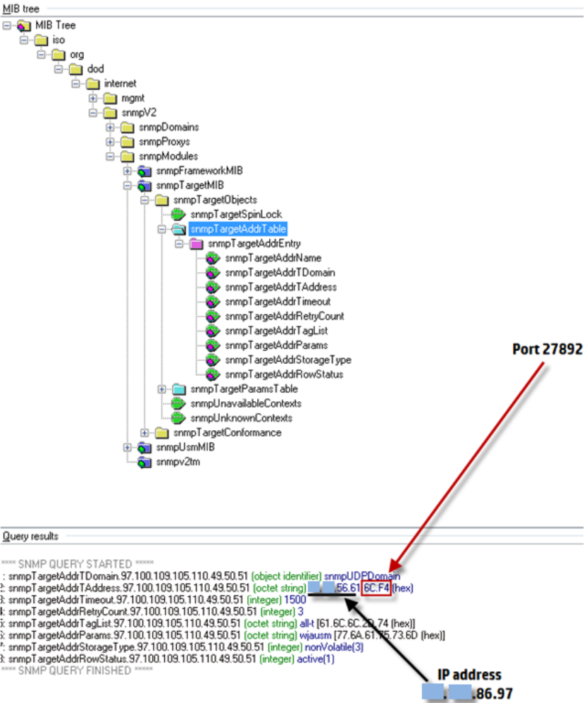 The snmpTargetParamsTable shows the username, password, context and protocols (Figure 27).