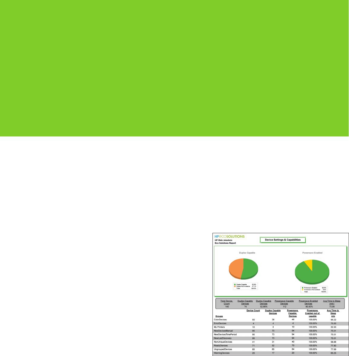 lower their organization’s environmental footprint. HP Eco Solutions reports enable