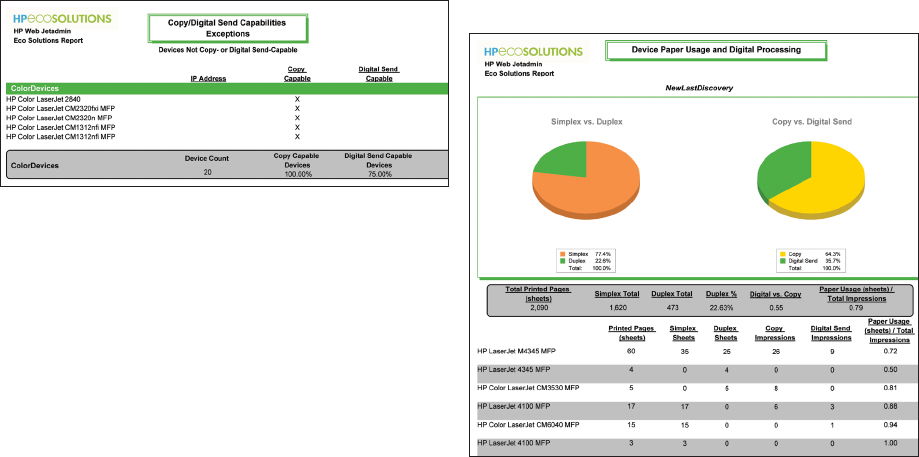 how you can use select HP Web Jetadmin capabilities and the HP Eco Solutions reports