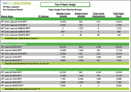 HP Web Jetadmin Software Eco Solutions Reports C01951651