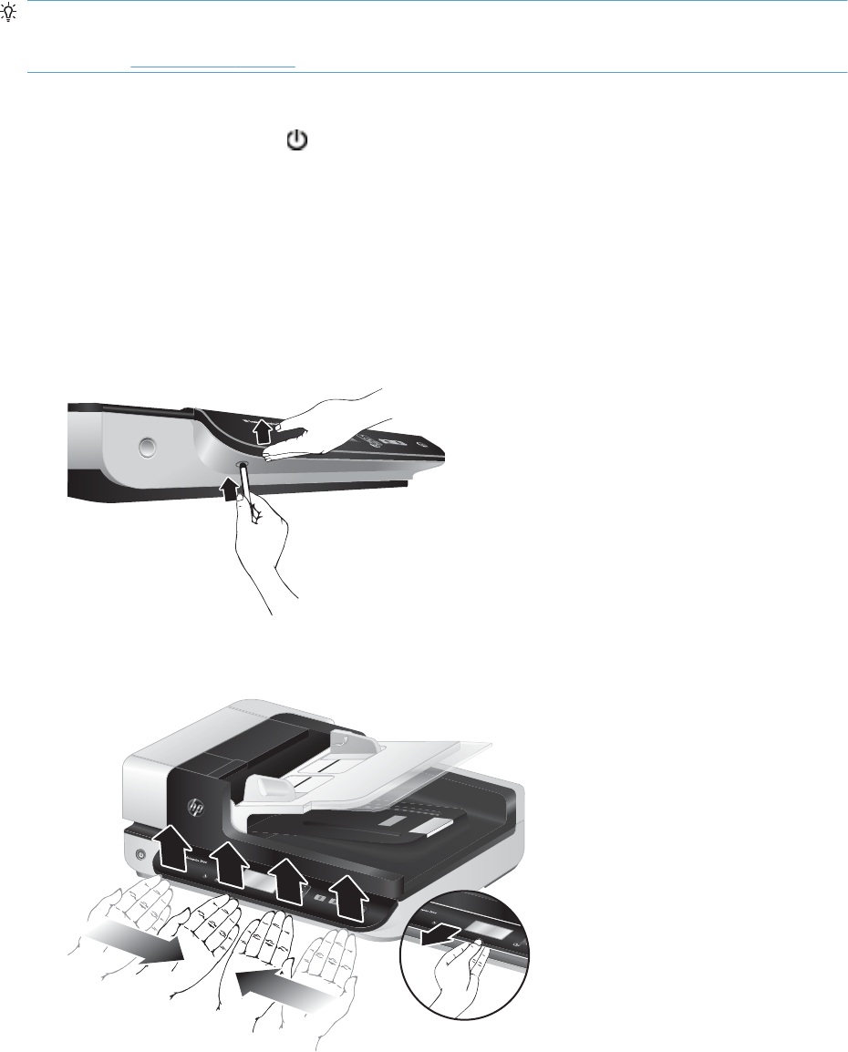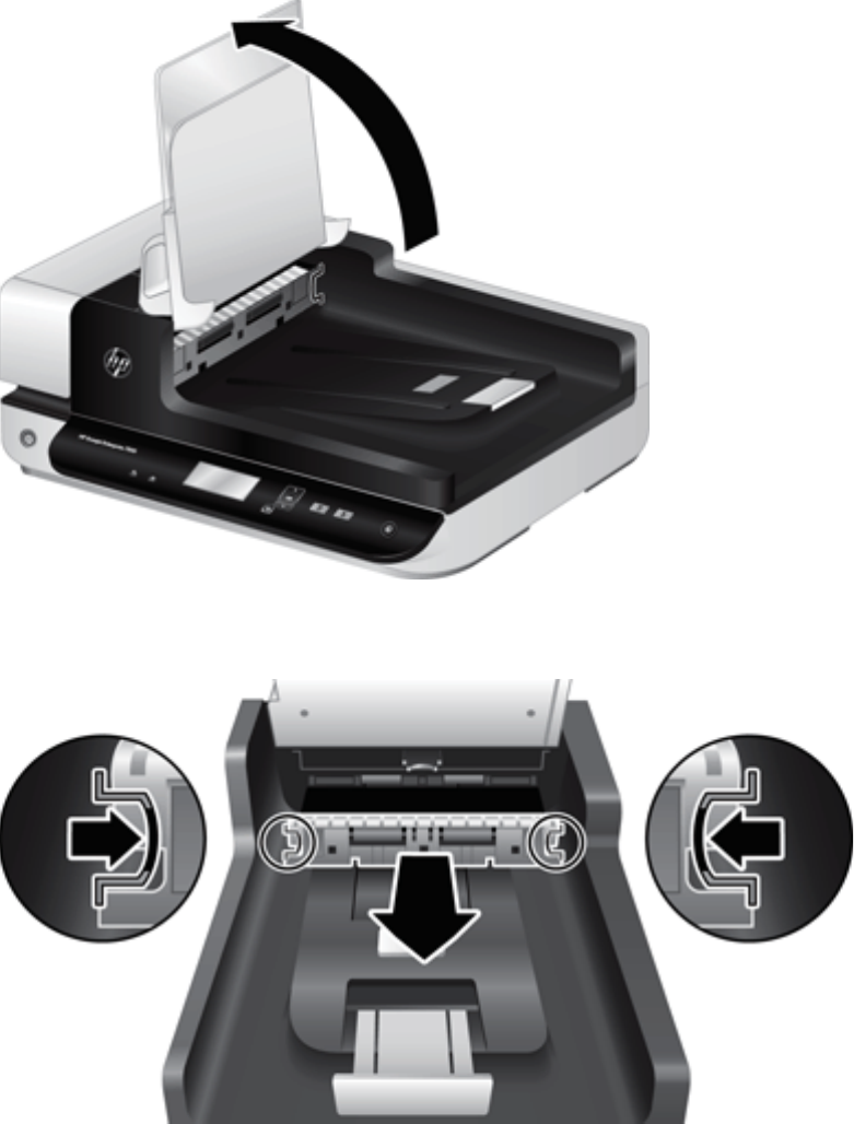 - Limpieza del cristal del escáner, la banda de digitalización y la parte trasera del dúplex del alime ...
