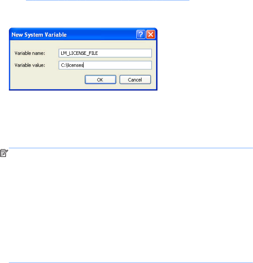 と、30 ページの図 5-10 「システム変数 LM_LICENSE_FILE の設定」で示した[新しいシステム変