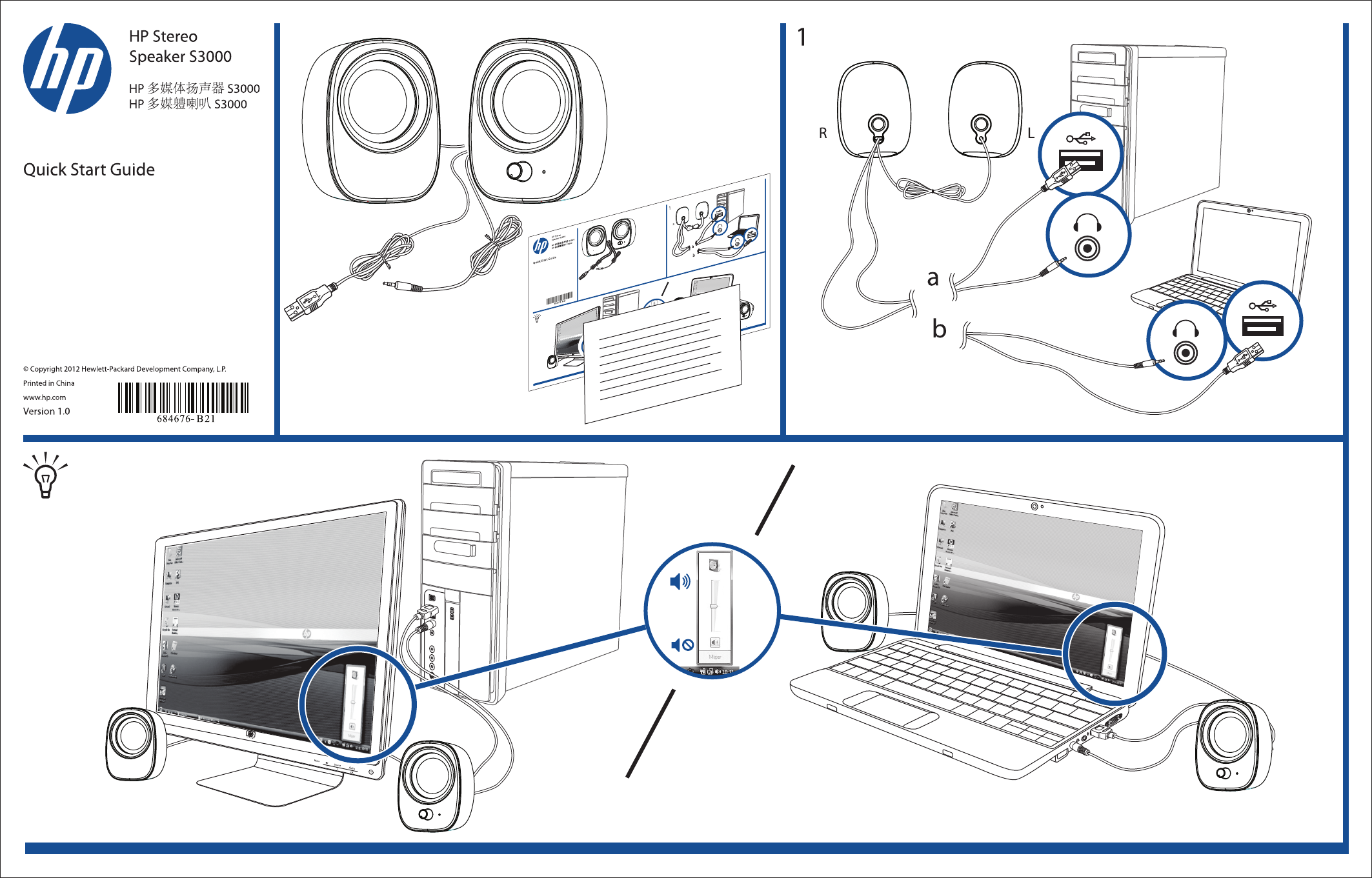 User Manual: HP HP Stereo Speaker S3000 快速安装指南