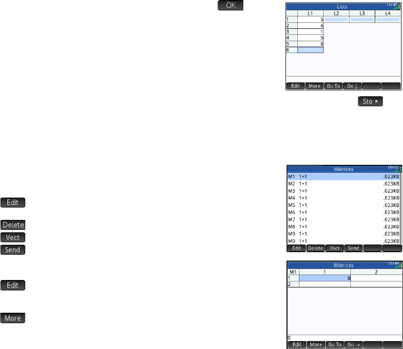 Puede crear una matriz o un vector en la vista de Inicio si presiona S 5 introduce cada