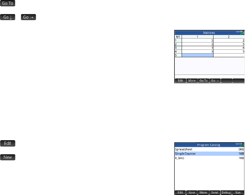 elemento. Utilice las teclas del cursor para moverse de una posición a otra en la matriz