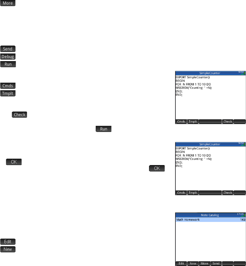 editar, ejecutar y depurar un programa, y enviarlo a otra calculadora HP Prime. También puede cambiar el nombre de los