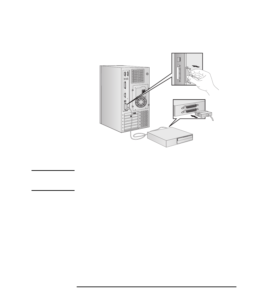 •en 8-bits SCSI-kontakt, en parallellutgang, to USB-kontakter, to