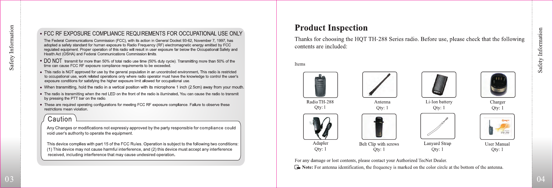 HQT Science and Technology TH-288V Two Way Radio User Manual TH 288