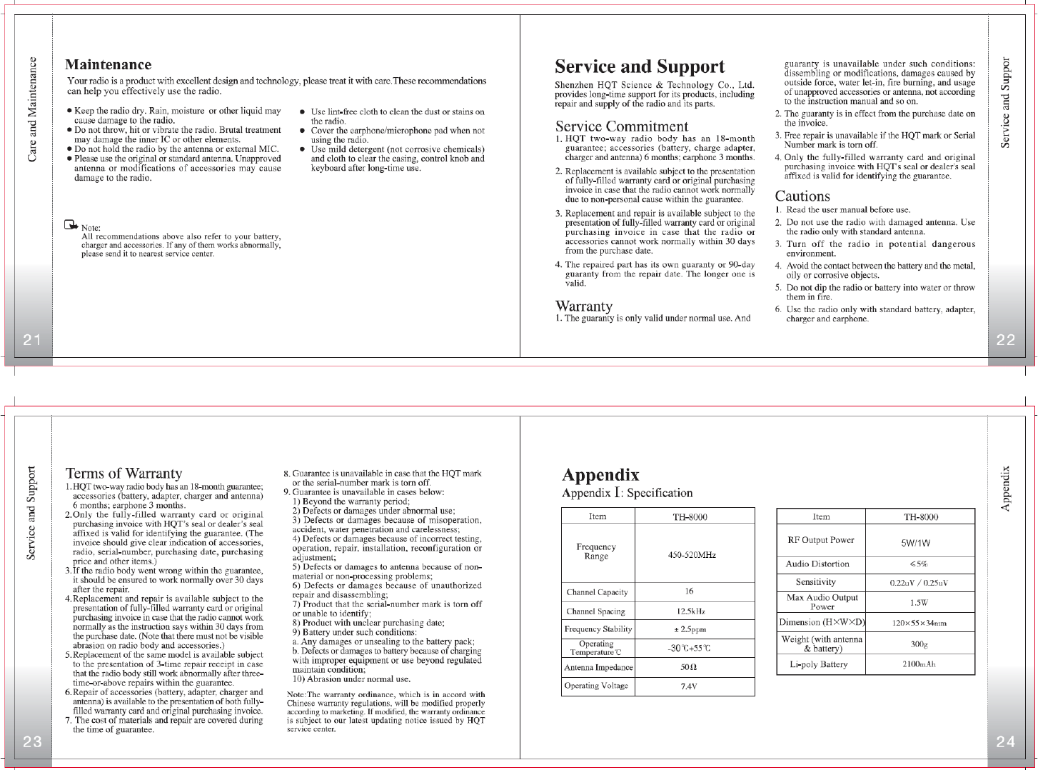 HQT Science and Technology TH-8000U2 Two-Way Radio User Manual