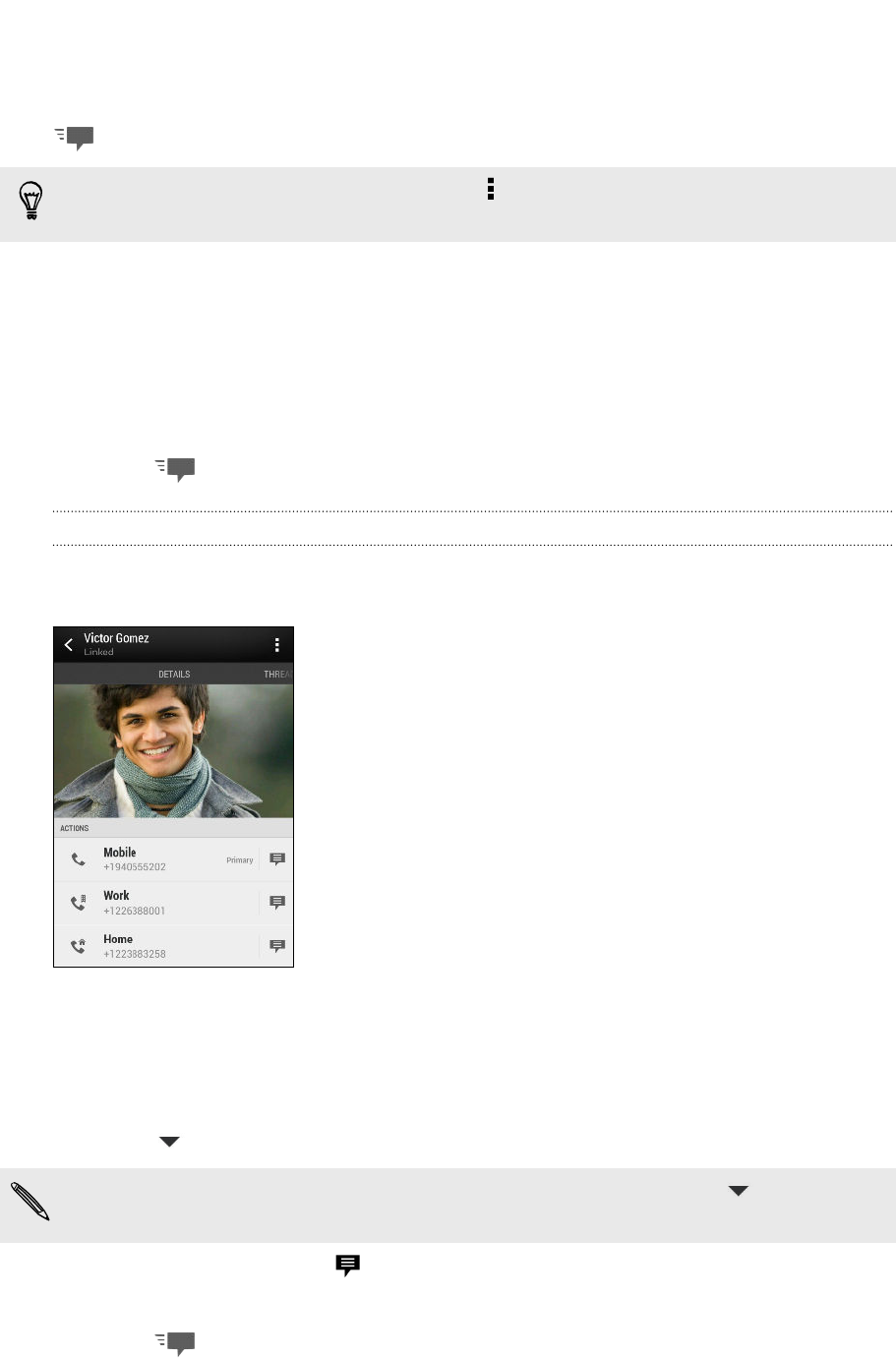 - Calling a phone number in a text message