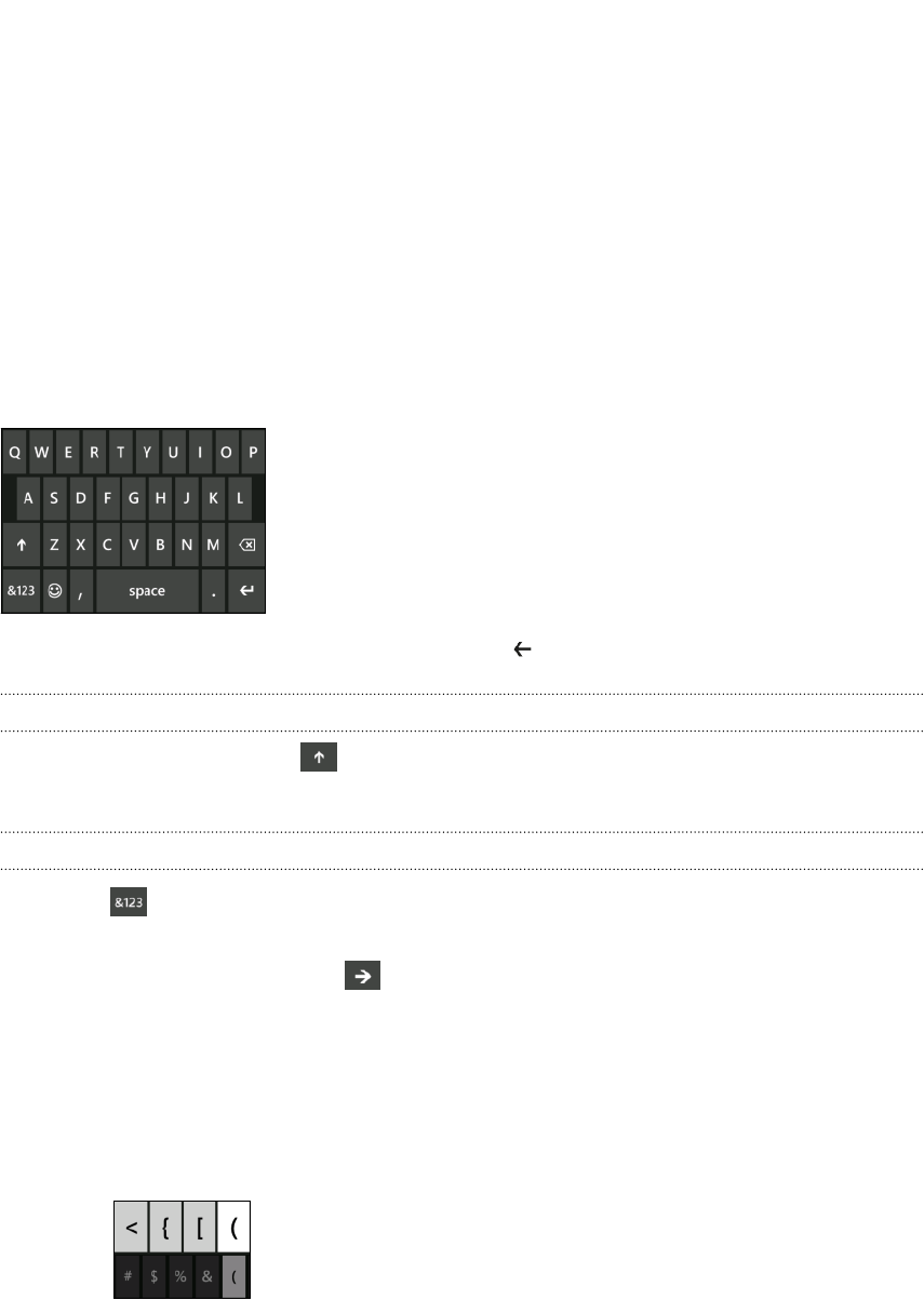 §Press and hold a symbol key such as the left parenthesis key, and then tap