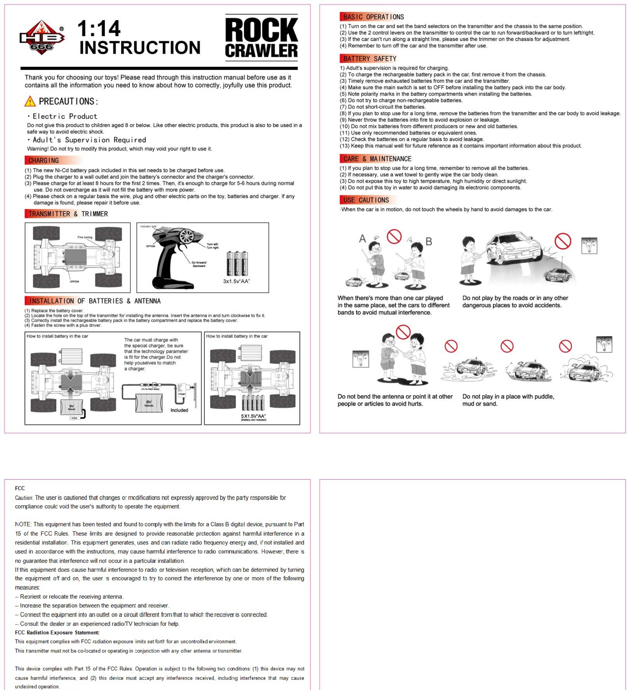 HUANG BO TOYS FACTORY HB-P1401-24 Remote control car series User Manual