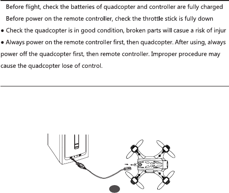 quadcopter fly in sight. If above mentioned happens, pwer off the quadcopter