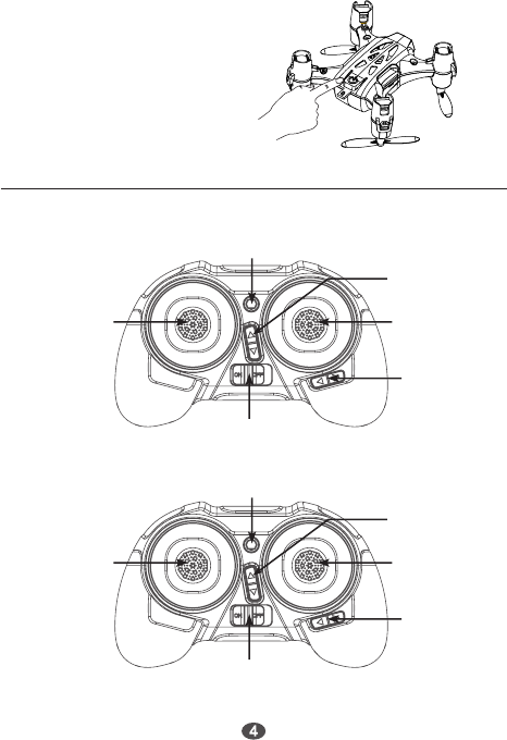 3)Land the quadcopter on the ground with the throttle stick fully down, take