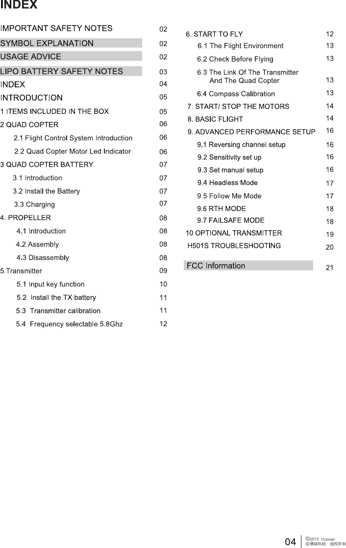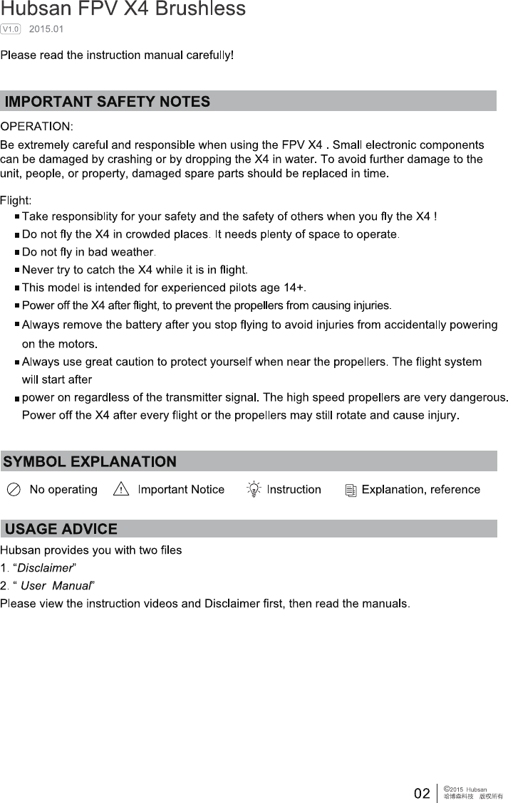 HUBSAN INTELLIGENT 501SRX FPV X4 brushless User Manual