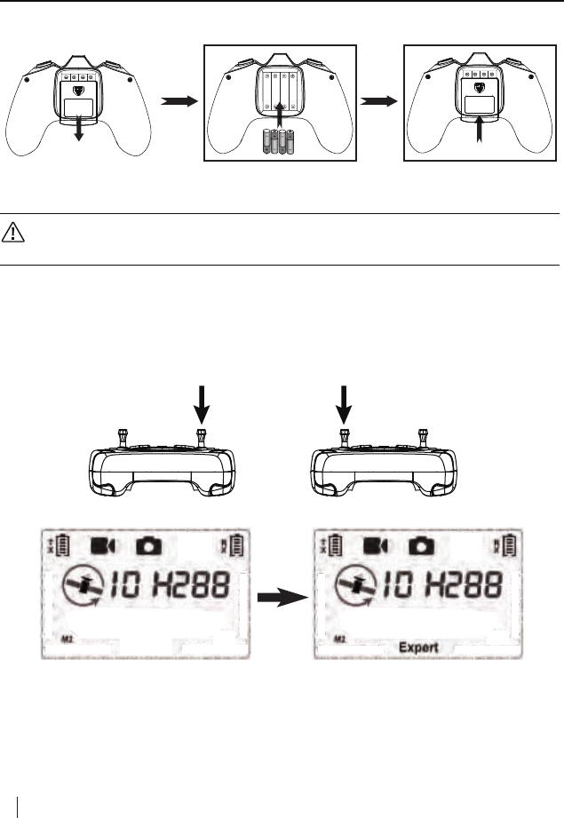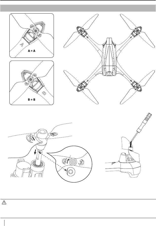 ● Make sure that the A and B propellers are installed correctly. The X4 will not fly if