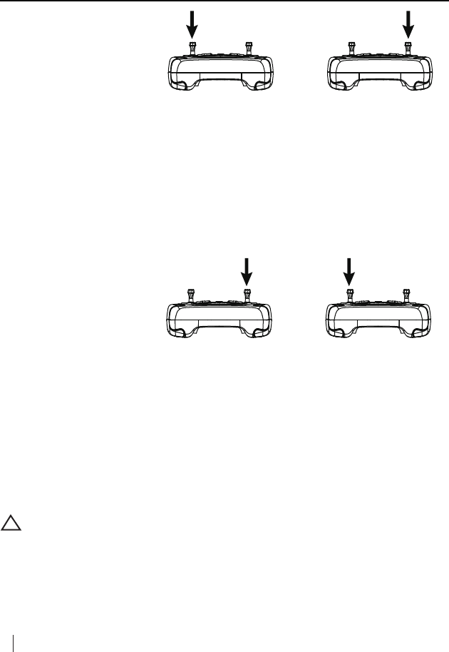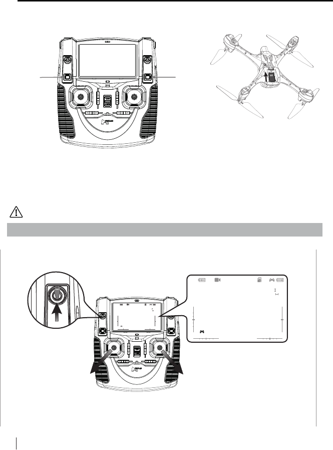Pull the throttle stick to the lowest position and press the Elevator stick for 1.5 seconds to
