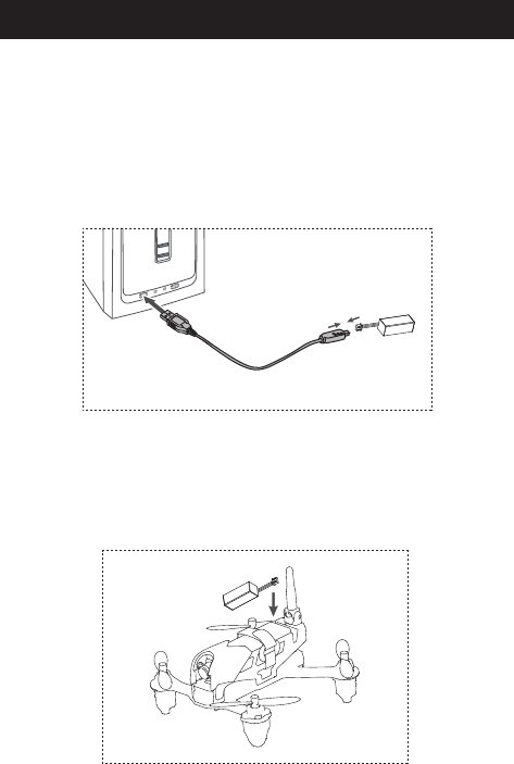 3. Connect the drone to its battery. While all units are in either binding or