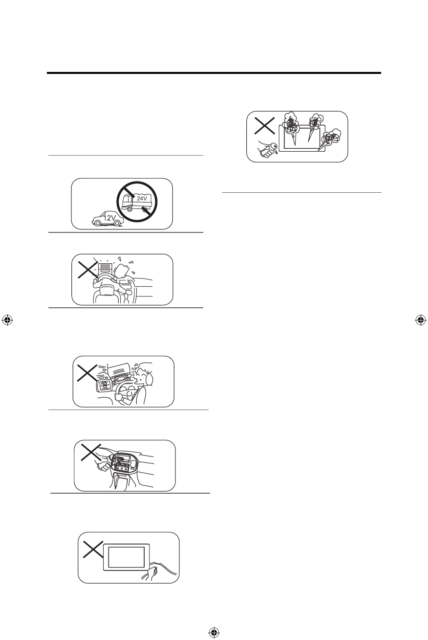 4. Never insert anything other than a 12 cm (5”) compact disc into the player as